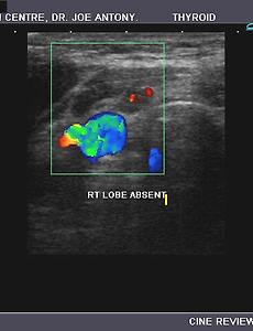 Hemiagenesis of the thyroid 1) absence of the right lobe of thyroid 2) normal or slightly enlarged left lobe and isthmus of thyroid This 18 yr. old female patient presented with symptoms of hypothyroidism. On sonography of the thyroid, we observed: 2) normal or slightly enlarged left lobe and isthmus of thyroid c) mild to moderate augmentation of vascularity of the left lobe on color doppler imaging. These ultrasound image.. 2009. 9. 14. 이전 1 다음