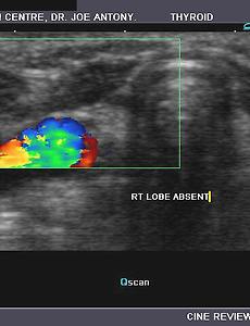 Agenesis of the thyroid Agenesis of the thyroidAgenesis of the thyroidAgenesis of the thyroid Sonography of the thyroid in this 1 yr. old female child revealed congenital absence of the entire thyroid. Note the empty fossae where the right and left lobes would normally lie. The carotid artery and jugular vein of both sides are seen in the color doppler images. These ultrasound and color doppler images suggest congenita.. 2009. 9. 14. 이전 1 2 다음